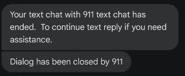 This is the text chat disconnect from the appropriate 9-1-1 call center based on your location.